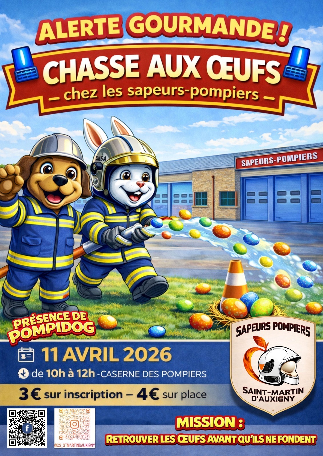 Les sapeurs pompiers de Saint Martin d’Auxigny oragnise une chasse aux oeufs le samedi 11 avril 2026 de 10h00 à 12h00 au centre de secours.