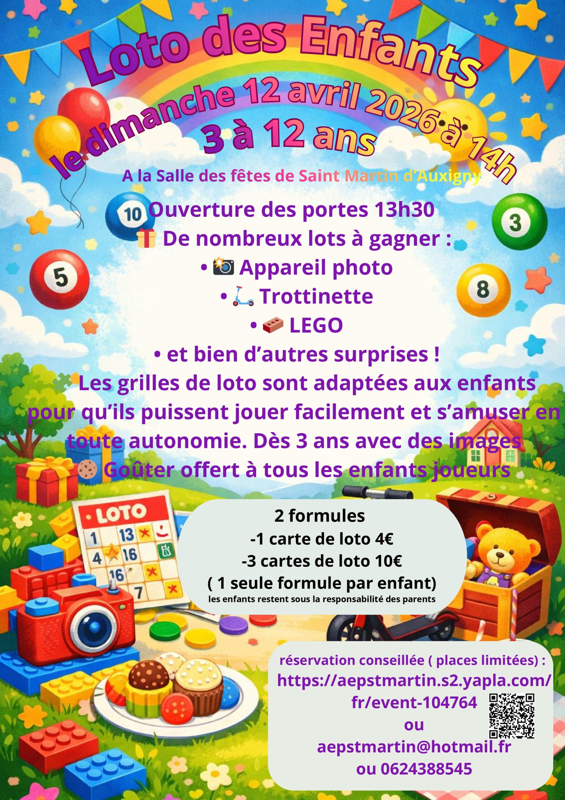 L’AEP de Saint-Martin-d’Auxigny est heureuse de proposer une grande nouveauté : le Loto des Enfants ! Un après-midi entièrement dédié aux plus jeunes, placé sous le signe du jeu, du rire et de la convivialité. Pensez à Réserver en ligne !