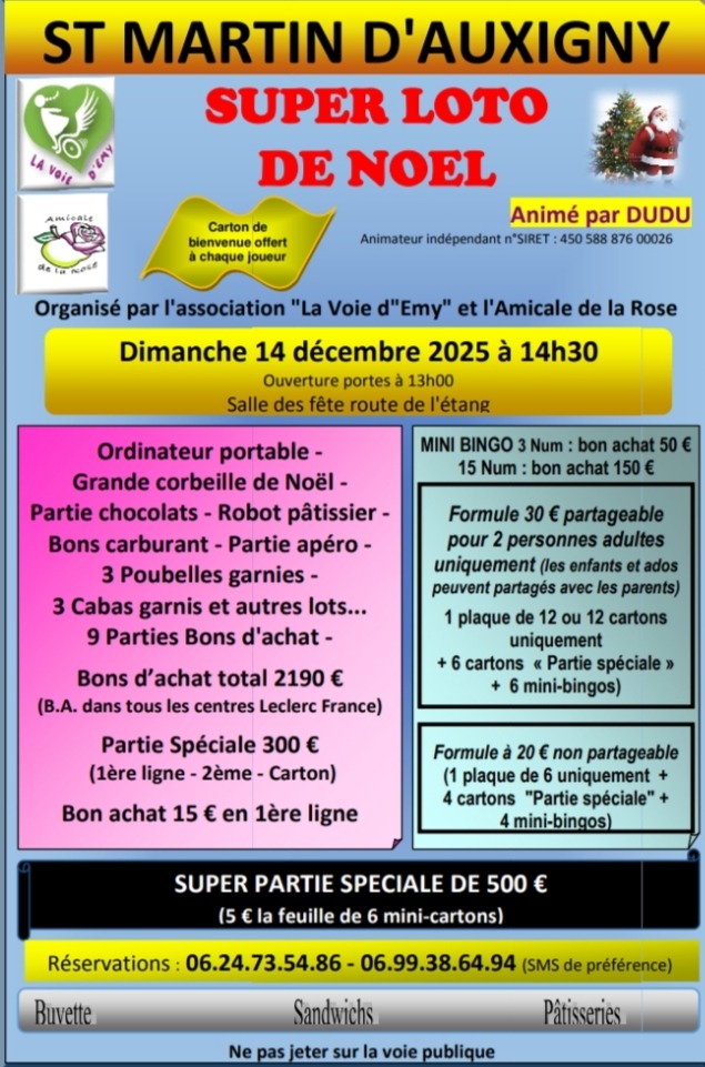 Envie de soutenir l’association la voie d’Emy tout en vous amusant ? Rendez vous dimanche 14 décembre 2025 à la salle des fêtes de Saint-Martin d’Auxigny.