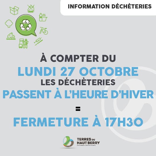[Info pratique] : Passage à l’heure d’hiver des déchèteries
