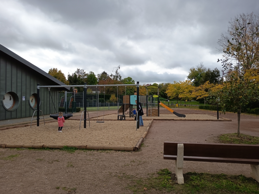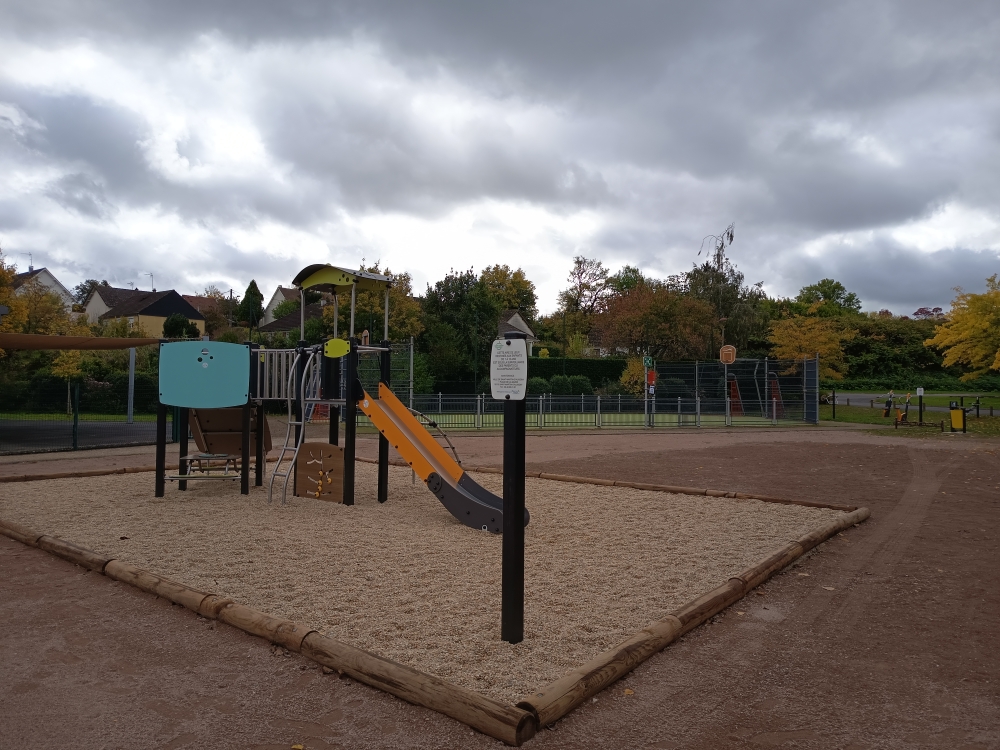 Elle comprend des jeux adaptés pour les enfants, des plus petits jusqu’à l’âge de 10 ans, avec une structure multi jeux (escalade, toboggan, panneaux, zone de repos ombragée, etc.), un portique (siège standard, siège bébé et siège nid d’oiseau) et un jeu à ressorts trois places.