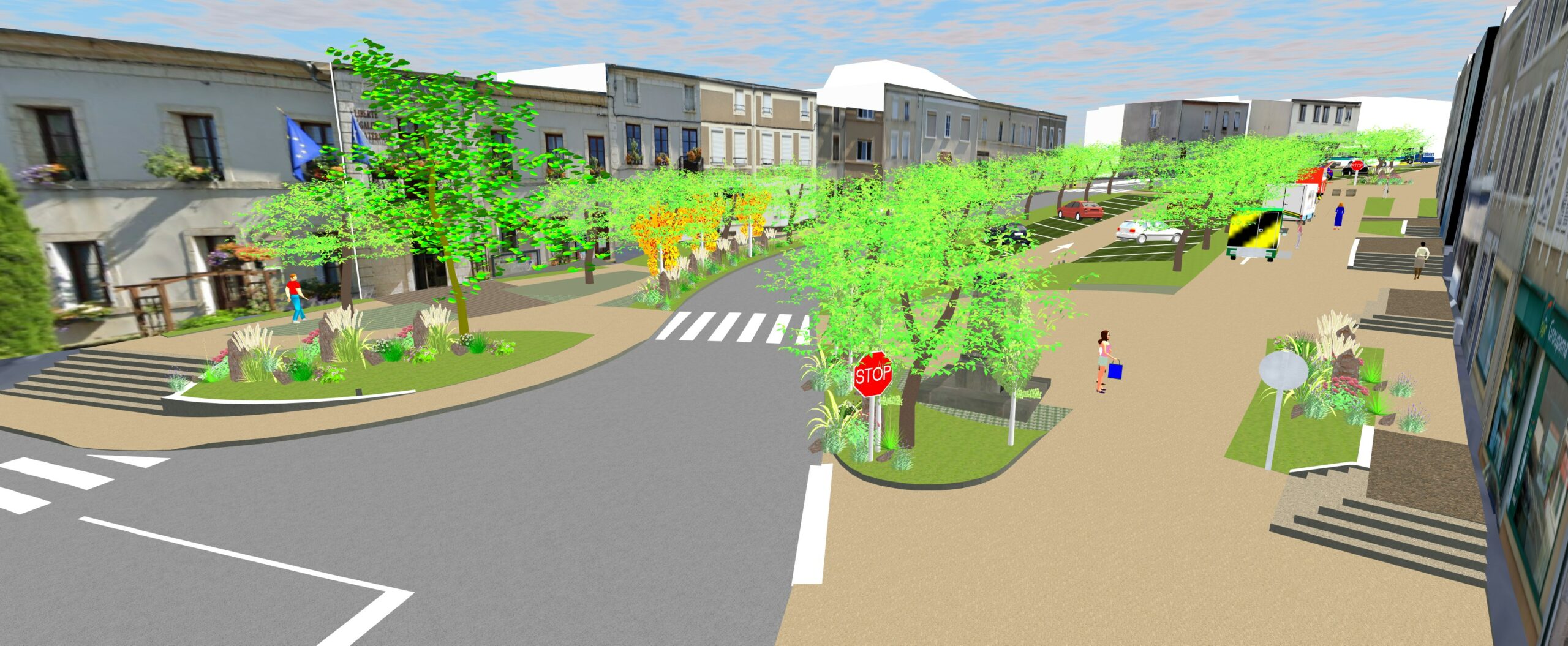 Ce travail a permis de dégager l’ensemble des actions à réaliser pour la création d’un centre-bourg agréable et qualitatif par la sécurisation et l’amélioration de l’espace public, notamment grâce à :