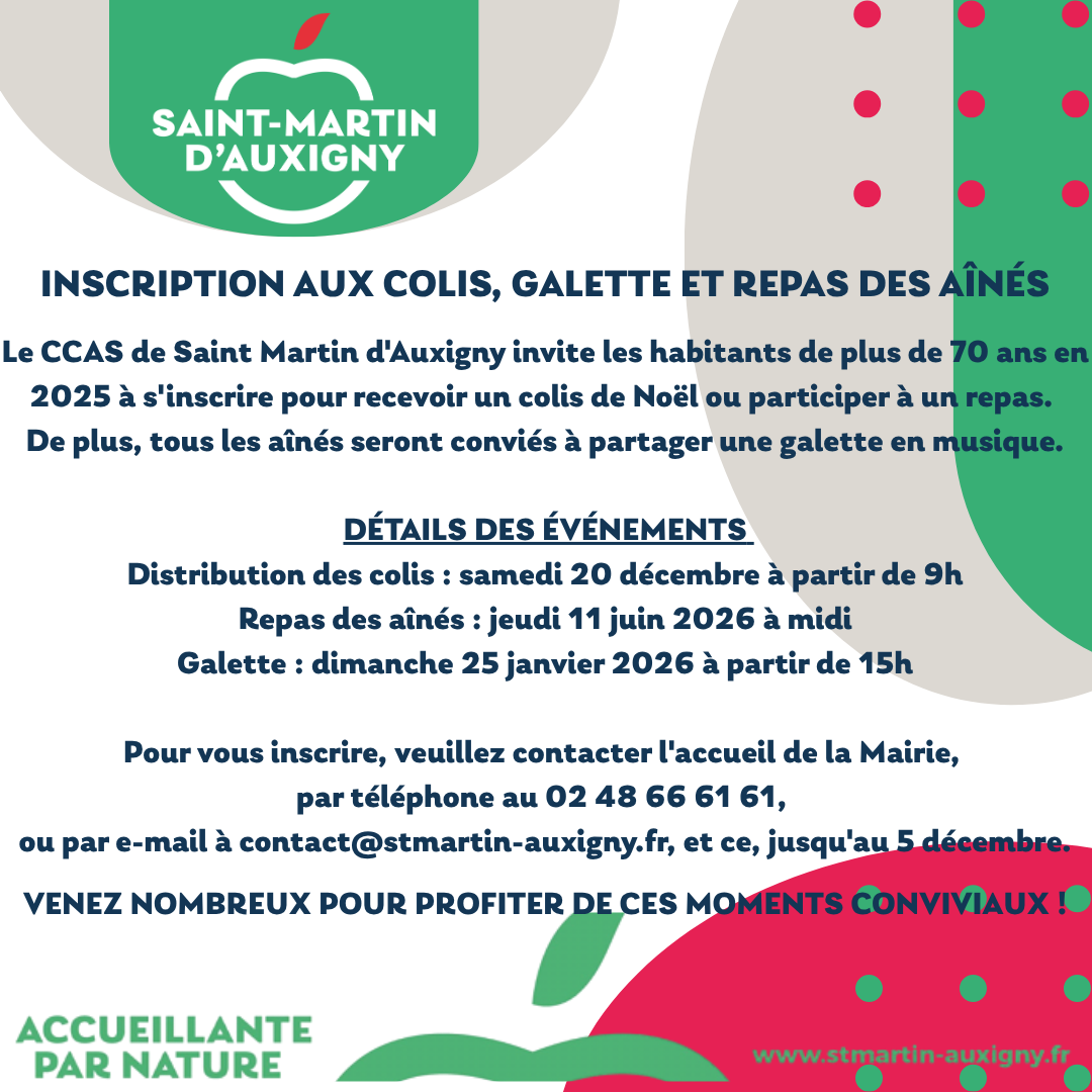 Inscription aux colis, galette et repas des aînés